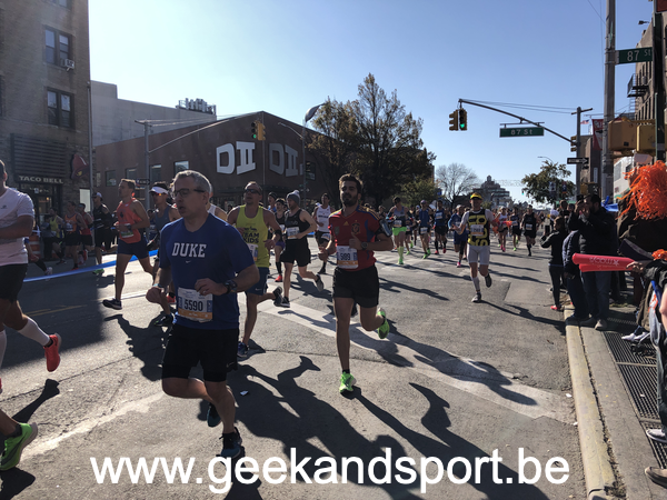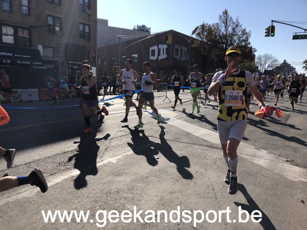 Après un passage au Bronx, on passe le dernier fuc*** pont. C’est un peu la marque de fabrique de cette course. Les passages des ponts sont vraiment difficiles. Pour arriver dessus, il y a souvent une pente assez hard. A cela, on ajoute du vent et aucun spectateur… le moral prend toujours un coup.