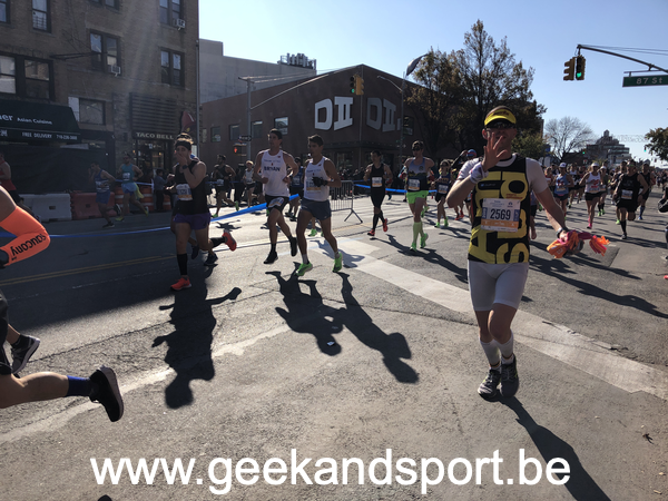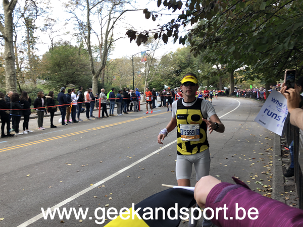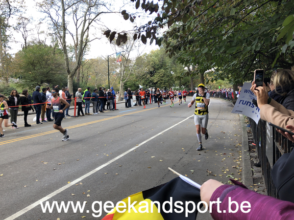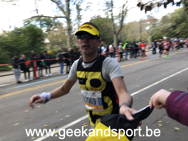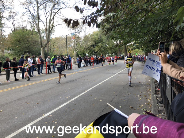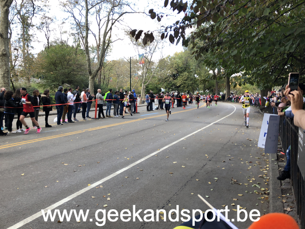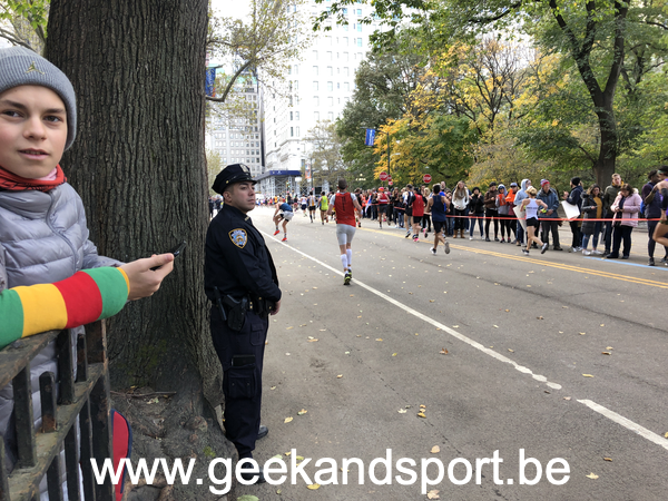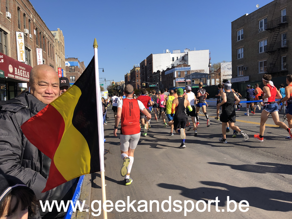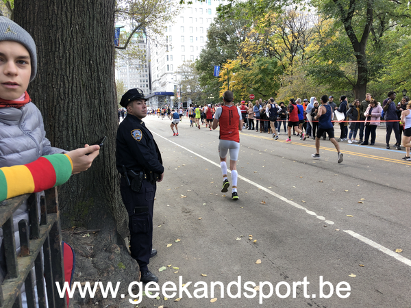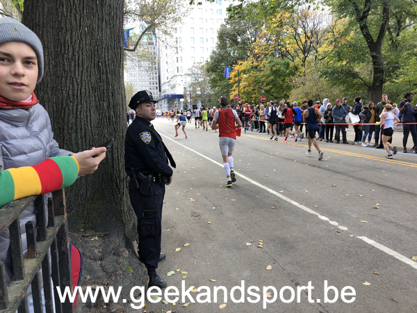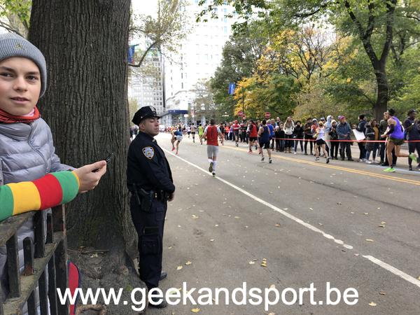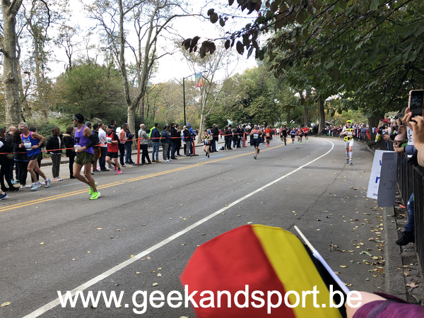 Arrivé dans Central Park, c’est le moment de voir une dernière fois ma lionne et les monstres. Je prends le drapeau belge histoire de profiter encore plus des 2 derniers kilomètres. On n’est pas beaucoup de belges sur cette course… mais on est là… et bien là.